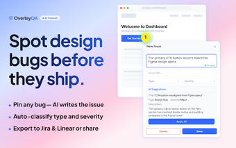 De belangrijkste functies van OverlayQA omvatten een 1-klik elementcaptatie voor het vastleggen van UI-elementen, een AI-gestuurde functie voor het automatisch opstellen van probleemomschrijvingen, en de mogelijkheid om Figma-ontwerpen direct te vergelijken met live webpagina's. Deze integraties bevorderen samenwerking tussen ontwerpers en ontwikkelaars, wat resulteert in een gestroomlijnde workflow en minder communicatieproblemen.